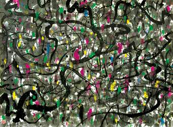 童年的家鄉(xiāng)種絲瓜、葫蘆,瓜藤纏綿,吸引蜜蜂鉆進(jìn)去采蜜,也吸引我隨著蜜蜂尋尋覓覓,留戀于密密藤葉間的神秘。后來(lái)看到蘇州拙政園里文徵明手植的紫藤,數(shù)百年的老藤繁枝密葉,自成宇宙一統(tǒng)。尤其當(dāng)落葉的秋冬季節(jié),枝藤交錯(cuò)的穿插更顯壯觀,似龍蛇搏斗,具翻江倒海之氣概。我畫不盡紫藤,畫不盡藤之情結(jié)。