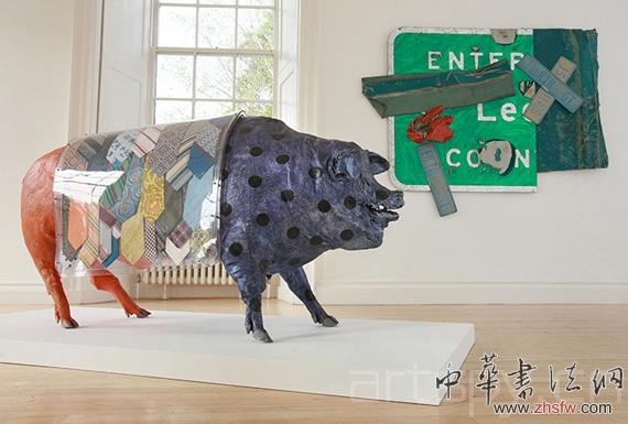 羅伯特·勞森伯格(Robert Rauschenberg)的作品“Uptown Pig Pox”(前)和“Le Coon Glut”(后)。