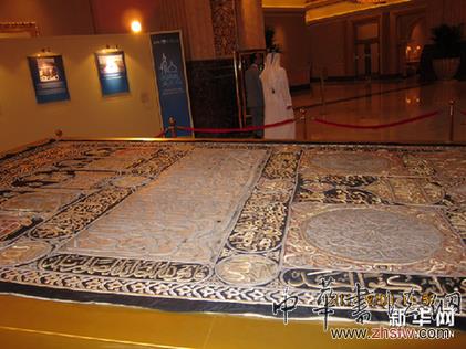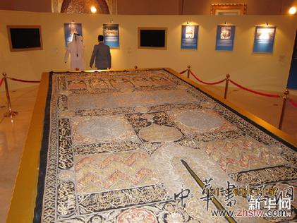 這是8月8日在阿聯(lián)酋首都阿布扎比的酋長國宮大酒店拍攝的文物罩毯。新華網(wǎng)圖片 安江 攝