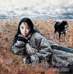 艾軒風格的最大特點是借景抒懷。他畫西藏高原的景色和孤獨的人物,主要是為了抒發(fā)自己內心世界的感情,因此,他的作品與其說是西藏風情畫,毋寧說是他內心的獨白。在這一幅幅畫中,都有艾軒的影子。沉默無語和靜靜思考,無名的孤獨感滲透在畫中人物和整個畫面氣氛之中。獨自一人在一望無際的草地、雪野、荒原,他(她)們生活在與大自然融為一體的世界里。