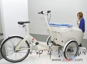 參觀者在觀看丹麥設(shè)計(jì)師設(shè)計(jì)的三輪童車。