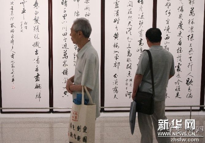 賈起家書(shū)法展于8月14日至20日在中國(guó)國(guó)家博物館舉辦。展出的60余幅作品以“北京精神”、“歷代詩(shī)人詠北京”和“歷代名家詩(shī)詞”為主題,書(shū)風(fēng)清圓秀潤(rùn)、勁健樸茂。作者以書(shū)法藝術(shù)來(lái)闡釋和弘揚(yáng)“愛(ài)國(guó)、創(chuàng)新、包容、厚德”的北京精神。此次展覽由中國(guó)書(shū)法家協(xié)會(huì)、北京市文聯(lián)和北京市文化發(fā)展中心合辦。據(jù)悉,展出結(jié)束后,賈起家先生將把全部展品捐贈(zèng)給北京文化發(fā)展基金會(huì)進(jìn)行公益拍賣,拍賣所得用于支持北京文化事業(yè),普及書(shū)法藝術(shù)。 (圖片:新華社攝影部 李方宇)
