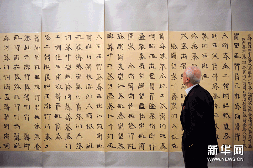 (1)9月20日,在土耳其伊斯坦布爾的現(xiàn)代藝術博物館,觀眾欣賞中國藝術家徐冰的書法作品。