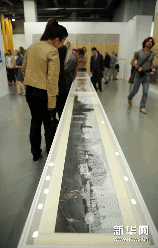 (6)9月20日,在土耳其伊斯坦布爾的現(xiàn)代藝術博物館,觀眾欣賞中國藝術家繆曉春的作品《北京手卷》系列。