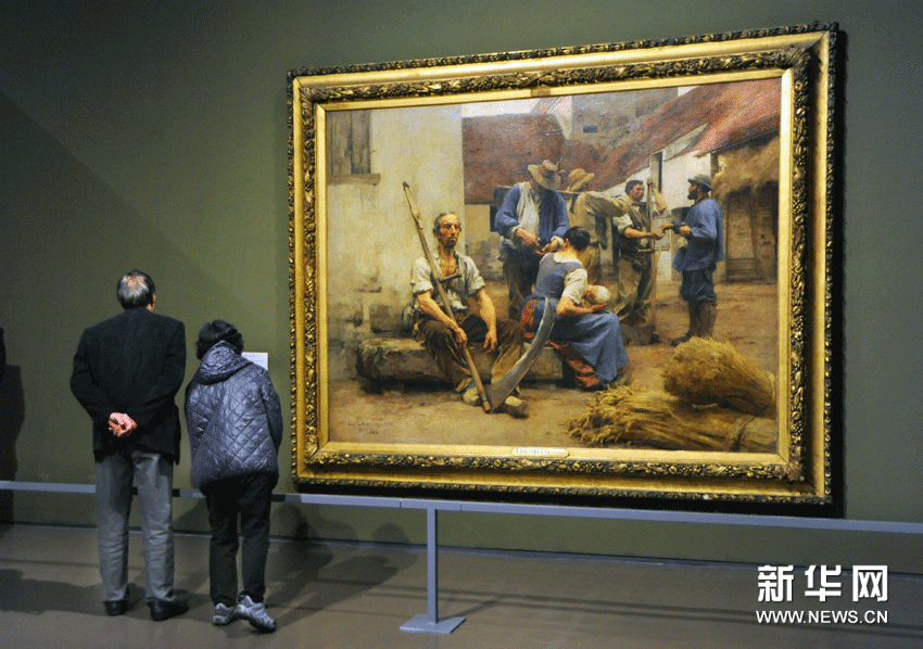 (4)11月16日,觀眾在《米勒、庫爾貝和法國自然主義:巴黎奧賽博物館珍藏》上欣賞世界名畫《收割者的報(bào)酬》?! ?/p>