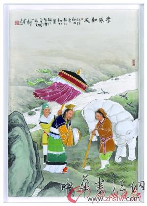 盧芝高作品《二十四孝圖》之“孝感動(dòng)天”,每一幅作品皆糅合了國畫、嵌瓷等藝術(shù)元素,可謂別開生面。