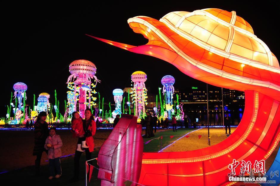 12月18日晚,深圳大型動(dòng)漫主題燈會(huì)在歡樂(lè)海岸椰林沙灘璀璨開幕,飛行的超人貝肯熊、巨大的水母、年代記憶等50多個(gè)主題彩燈向游客展現(xiàn)生動(dòng)有趣的故事,本屆燈會(huì)將橫跨圣誕、元旦、春節(jié)、元宵等五大節(jié)日。中新社發(fā) 陳文 攝