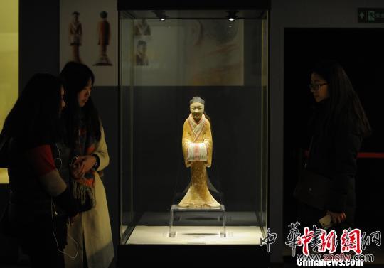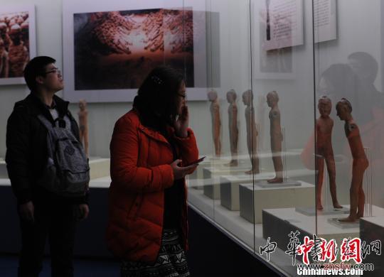 圖為展覽現(xiàn)場,宦官俑吸引市民前來參觀。周毅 攝
