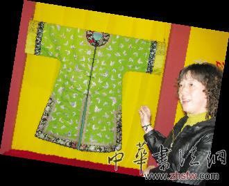 清宮電視劇中,兩把頭扇形冠、旗袍和高跟木鞋,給人們留下了深刻印象。這些服飾真品,此次都一一展現(xiàn)。展廳正中是一件華麗的“百蝶衣”,因?yàn)榇褥矏酆T瑯s介紹說,后妃們穿的便裝叫氅衣,咸豐、同治期間,京城貴族婦女衣飾鑲滾花邊的道數(shù)越來越多,有“十八鑲”之稱。這種裝飾風(fēng)尚,一直到民國(guó)期間仍流行。