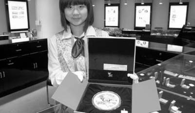該店店長王磊告訴記者,自世博園開園以來,貴金屬柜臺的銷售業(yè)績一直很“亮眼”?!暗昀镉袔装倏畹馁F金屬紀念品,賣得最好的一天,僅貴金屬紀念品的銷售額就達到47萬元?!蓖趵跓崆榈貙①u得最好的一款產(chǎn)品展示給記者看,“這款一軸四館純銀紀念章由5枚直徑40毫米、厚2.5毫米的純銀紀念章構(gòu)成,采用金銀雙色工藝制作,今天剛剛賣脫銷了?!?/P>