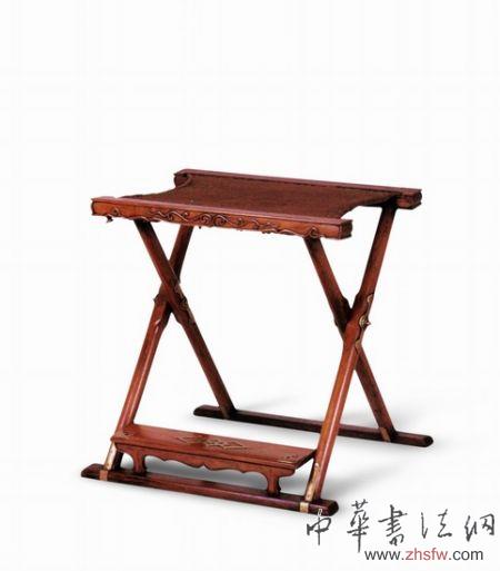 交杌,即腿足相交的杌凳,由于它可以折疊,在攜帶、存放上都比較方便,所以千百年來廣泛被人使用。明式的交杌,最簡單的只用八根直材構(gòu)成,杌面穿繩索或皮革條帶。比較精細(xì)的則施雕刻,加金屬飾件,用絲絨等編織杌面。