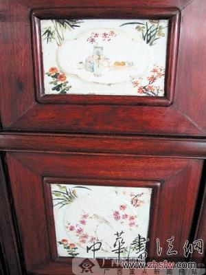 屏風上鑲嵌的瓷板非常精美。