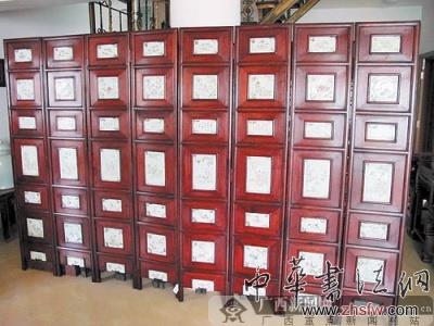 “其實,在現(xiàn)代生活中雖然少見有人還使用屏風,但是遮蔽的需求還是存在的,人們也巧妙地使用別的形式來代替屏風的作用?!蹦蠈庂Y深藏家丁敢說,他之所以喜歡收藏屏風,就是想追求一種雅趣。經(jīng)過多年的淘寶經(jīng)歷,丁敢收藏了好幾套品相完好的古代屏風,有的大氣磅礴,有的溫柔婉約。比如說,一套12扇的清代酸枝屏風,高達3.36米,全部展開有5.2米長,讓人感覺非常震撼。還有一套8扇的清代酸枝鑲瓷板屏風,高1.88米,全部展開有2.88米長,貴氣十足。另一套清代廣式樟木雕屏風,高1.77米,展開2.72米長,則顯得十分精巧婉約。丁敢說,屏風是一種集實用、文化、藝術內(nèi)涵的家具。古人就使用屏風作擋風、間隔、遮蔽之用。現(xiàn)代生活中,不少家庭喜歡做一些隔斷裝飾,其實就起到類似屏風的作用。