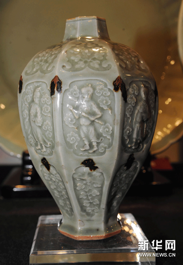 (5)11月16日拍攝的元朝龍泉青釉印花卉八仙圖八棱梅瓶,估價(jià)400萬至700萬港元。