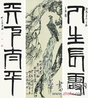 齊白石《松柏高立圖·篆書四言聯(lián)》