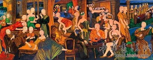 中新網(wǎng)1月4日電 在日前舉行的廣州融德國(guó)際秋季藝術(shù)品預(yù)展及拍賣會(huì)上,田流沙的18米巨作《夜宴》拔得頭籌,破千萬(wàn)元大關(guān)。