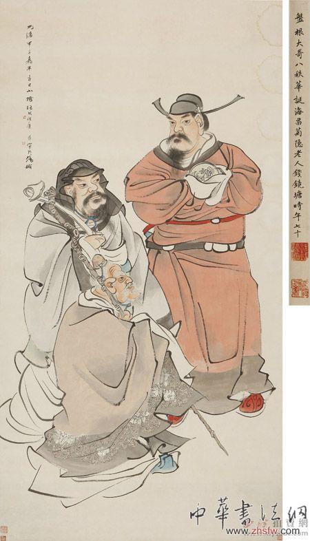 任伯年是海派藝術(shù)最具代表性的畫家、海派書畫的領(lǐng)軍人物。其繪畫技巧嫻熟精確,人物、花卉、飛禽、走獸、山水無一不能。其中最有成就的自然是人物畫。繼2011、2012連續(xù)兩年推出任伯年劃時(shí)代的人物畫作《華祝三多圖》與《棕陰納涼圖—吳昌碩小像》之后,今年西泠春拍續(xù)推這一主題,呈拍兩幅任伯年的人物畫力作。其一為文革末年由海上著名收藏家錢鏡塘70歲時(shí)贈(zèng)與敬修堂主人的巨幅之作《福祿壽三星圖》;其二為程十髪舊藏《五谷豐登圖》,此畫還出現(xiàn)在1961年上??平讨破瑥S所拍攝的電影《任伯年的繪畫》之中。