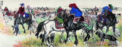 黃胄 《歡騰的草原》 紙本設(shè)色 142×360厘米 1981年