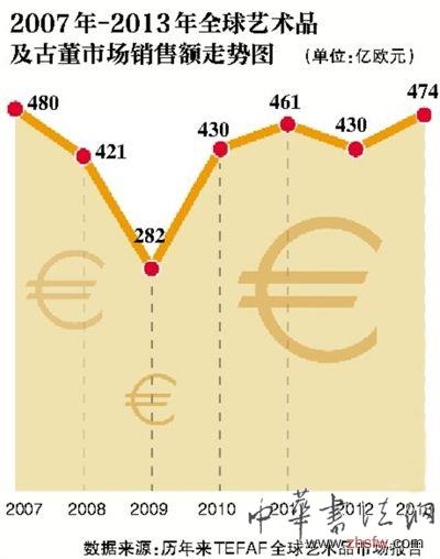 2007年-2013年全球藝術品及股東市場銷售額走勢圖