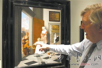 歐洲藝術博覽會發(fā)起人之一、英國倫敦藝術經銷商約翰尼·凡·海夫頓(Johnny Van Haeften)在博覽會現場講述由荷蘭畫家雅各布·奧克特維特(Jacob Ochtervelt)繪于1663年的作品《女仆與女孩》。這幅作品在今年1月30日紐約蘇富比拍出了442.1萬美元。
