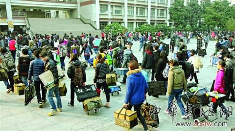 昨天,來自各地的考生背著畫夾,手提各式畫箱走進蘇州大學考點。 □記者華雪根攝