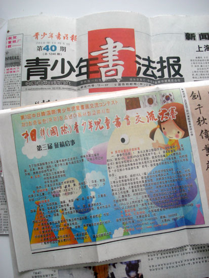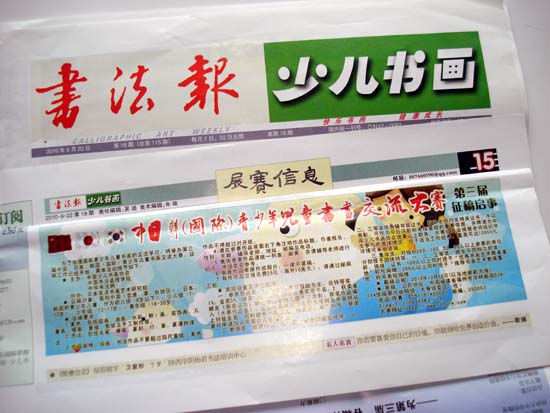 ▲圖為刊登在2010年10月5日第40期(總1246期)《青少年書法報》第四版的征稿啟事像片