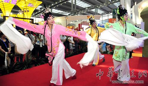廣西參展團(tuán)的演員在深圳文博會(huì)上表演戲曲歌舞《桂韻新風(fēng)》