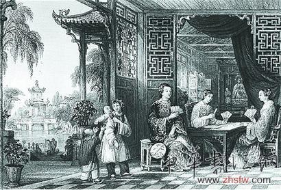 圖一:《大清帝國(guó)印象》中的《打牌的貴婦人》銅版畫