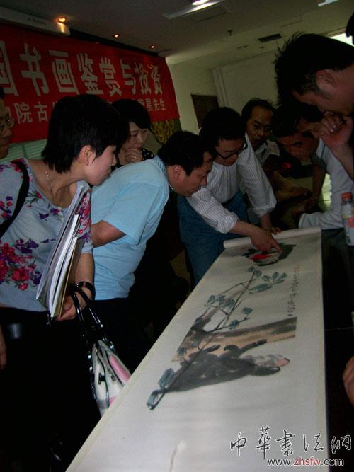 下午,聯(lián)合魯中晨報鑒寶團(tuán)進(jìn)行書畫專場鑒寶活動,年輕的書畫鑒賞家為來到現(xiàn)場參加鑒別的藏友大開眼界,他對前來鑒別的每幅畫都做了詳細(xì)的解釋,真畫為什么是真的,贗品仿到什么程度,就連誰仿的張蔚星也講得頭頭是道,這讓前來鑒別的藏友圍著張蔚星傾聽,名為鑒寶會,實際上成了一場鑒賞實踐講座?!皬埾壬m然年輕,沒想到他比一些老專家都有學(xué)問?!被概_的一名前來參加鑒別的藏友說。