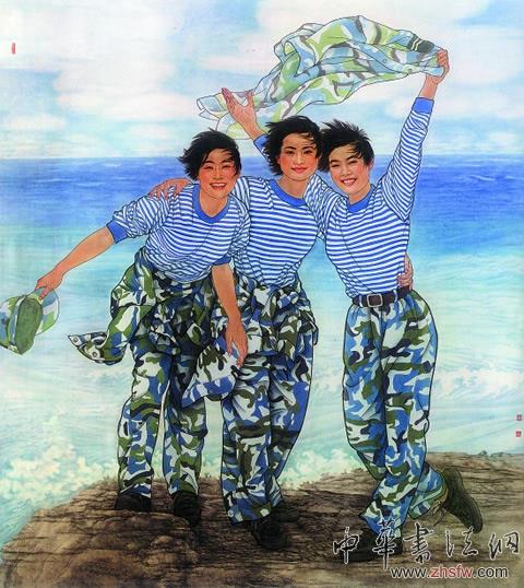 黃援朝 西沙女兵 210×190cm (選自《第十一屆全國(guó)美術(shù)作品展中國(guó)畫(huà)作品集》)