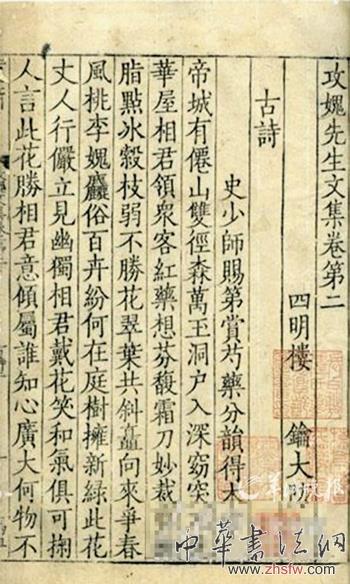 本文配圖的《攻媿先生文集》,刻印于南宋嘉定年間,據(jù)記載屬海內(nèi)孤本。寫刻極為精美,字體剛勁娟秀,為南宋后期浙東刻書的代表作。因此,為出版《毛主席詩(shī)詞》線裝本挑選字體時(shí),選遍國(guó)內(nèi)所有的宋版書,最終選中了這一部書的字體,曾名動(dòng)神州。