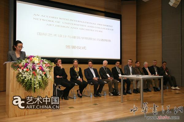 中央美院院長潘公凱在國際藝術(shù)設(shè)計與建筑學(xué)院院長溝通網(wǎng)絡(luò)協(xié)議上簽字