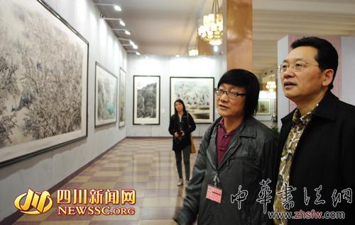 四川省委宣傳部副部長趙明仁在省美協(xié)副主席、秘書長梁時民的陪同下觀展