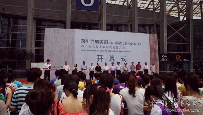 四川更加美麗———四川美術(shù)書法名家優(yōu)秀作品展”于2011年6月15日下午,在新會(huì)展的8號(hào)館隆重開幕,展出了200多幅由四川書畫家創(chuàng)作的美術(shù)和書法作品,展現(xiàn)四川人民在黨中央、國務(wù)院的領(lǐng)導(dǎo)下,堅(jiān)強(qiáng)奮進(jìn),書寫抗震救災(zāi)、災(zāi)后重建和加快發(fā)展的嶄新篇章的精神風(fēng)貌。 蔣巨峰省長(zhǎng)出席開幕式。