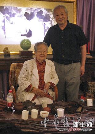 6月25日,張大華(右)與齊派藝術(shù)大師婁師白的夫人王立坤女士在畫展上合影。新華網(wǎng)圖片 王丹 攝