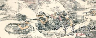 我創(chuàng)作作品《突破烏江》,主要受到三個(gè)方面的深刻啟迪。其一是毛主席詩意。“紅軍不怕遠(yuǎn)征難,萬水千山只等閑”、“雄關(guān)漫道真如鐵,而今邁步從頭越”,這些詩詞曾無數(shù)次讓我激動(dòng)不已,它們深刻地表現(xiàn)了紅軍在艱難困境中從容不迫的精神氣度和志在必得的勝利信念。其二是對歷史資料的收集和研究。1935年召開的遵義會(huì)議,是中國共產(chǎn)黨歷史上一個(gè)生死攸關(guān)的轉(zhuǎn)折點(diǎn),烏江是進(jìn)入遵義的重要通道,正是搶渡烏江戰(zhàn)斗的勝利,保證了“遵義會(huì)議”的召開。其三是現(xiàn)場參觀學(xué)習(xí)的心得體會(huì)。我在遵義參觀了會(huì)議舊址,真切感受到戰(zhàn)爭年代共產(chǎn)黨人對國家獨(dú)立、民族解放的堅(jiān)定信念。