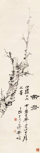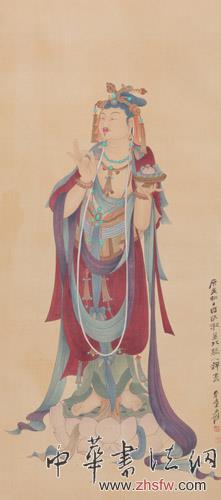 另一件張大千《敦煌男相觀音》,系40年代初期在敦煌深研壁畫(huà)后所作,敷色、勾線都非常精妙,又系著名收藏家郭春甫琴硯齋舊藏,是傳世張大千此類(lèi)作品中極為罕見(jiàn)的一件。而尺幅只有44×52cm的《逸居湖山》,曾經(jīng)《張大千畫(huà)集》等多次出版,系張大千潑彩山水中極為精彩的一件。此外,著名篆刻家、收藏家王一羽舊藏的張大千《齊眉》是其1944年客居成都時(shí)贈(zèng)當(dāng)?shù)馗蛔彗姴偱畠撼黾拗?,寥寥幾筆,僅繪一枝梅干、數(shù)朵梅花,而風(fēng)度全出。