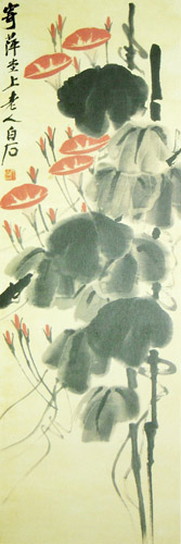 由香港佳士得1990年拍出的齊白石《山水花鳥(niǎo)》六開(kāi)冊(cè)、香港翰墨軒1987年出版的齊白石《牽?;ā?,以及美國(guó)回流的齊白石《墨蟹》、《不羨金莖》等作也相當(dāng)難見(jiàn)?!渡剿B(niǎo)》冊(cè)雖僅六開(kāi),但包括山水、人物、花鳥(niǎo)諸種題材,其中數(shù)開(kāi)山水可視為齊氏后期山水作品的范式之作;而“松庭嬰戲”一開(kāi)更薈萃山水、人物題材,在齊白石此后所作中百不一見(jiàn),備極珍罕。