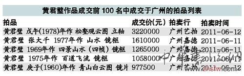 畫(huà)家黃君璧作品成交排行榜。表 記者林琳