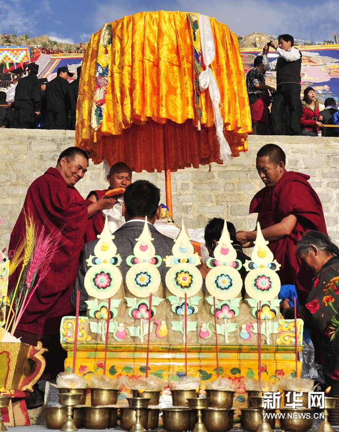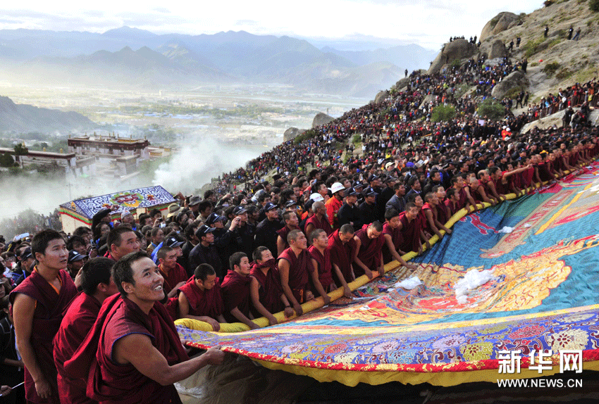 當日,2011年西藏拉薩雪頓節(jié)正式開幕,哲蚌寺和色拉寺舉行展佛活動。拉薩雪頓節(jié)起源于公元11世紀中葉,意為吃酸奶的節(jié)日,是國務院首批列入保護名錄的非物質文化遺產。本次拉薩雪頓節(jié)將于9月4日閉幕。新華網圖片 陶希夷 攝