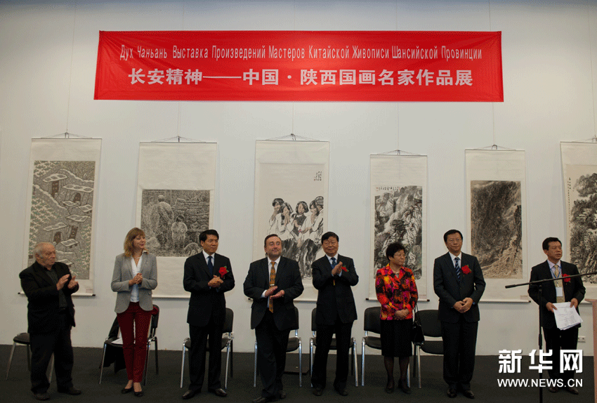 當日,由中國駐俄羅斯大使館、陜西省文學藝術(shù)界聯(lián)合會和陜西省美術(shù)家協(xié)會聯(lián)合舉辦的“長安精神——中國·陜西國畫名家作品展”在莫斯科開幕。本次展覽共展出30位陜西畫家的40幅精品力作。新華網(wǎng)圖片 姜克紅 攝