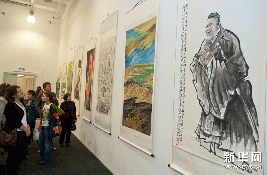 (3)9月13日,俄羅斯學生參觀在莫斯科舉行的“陜西國畫名家作品展”。