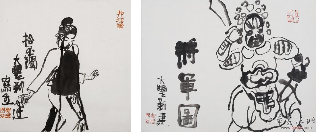 朱新建水墨戲曲人物《拾玉鐲》 朱新建水墨戲曲人物《將軍圖》