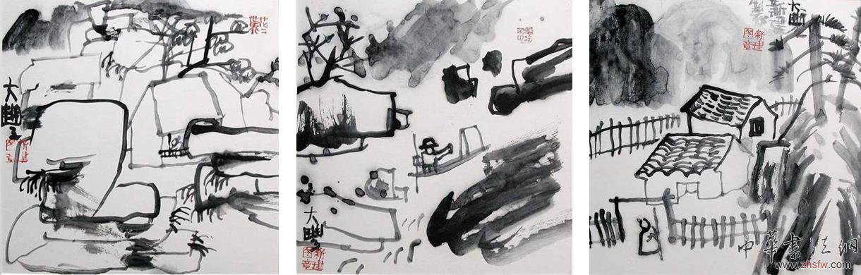 朱新建右筆最后的作品之一《宿墨山水系列三幅》
