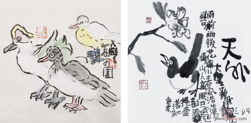 朱新建設色花鳥《鴛鴦寫生》 朱新建水墨花鳥《天外》