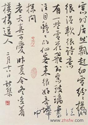 ■書法創(chuàng)作首先要有從大處落筆著墨的創(chuàng)作思路,感覺(jué)上追求大氣,但要避免粗糙、形式化;其次,要仔細(xì)用心,注重細(xì)節(jié)和筆畫的必要刻畫,創(chuàng)作過(guò)程要求細(xì)膩,但要避免鉆進(jìn)匠氣的泥潭。這樣,有了跌宕起伏的大氣勢(shì)和勁健的風(fēng)骨,就大大增強(qiáng)了線條的抒情性、流暢性、趣味多樣性、視覺(jué)可觀性,創(chuàng)作作品才能進(jìn)入深層次、深高度的境界。(錢茂生《書藝雜談》,選自《書與畫》,2012年第2期)