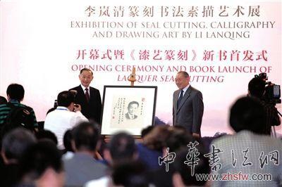 李嵐清新書《漆藝篆刻·讓篆刻走向大眾》同時首發(fā),書中收錄了他最新創(chuàng)作的150多方漆藝印章,配以精美的圖片,圖文并茂,有利于推動篆刻藝術(shù)的普及、發(fā)展與繁榮?,F(xiàn)場,李嵐清向北京市教委、北京市新聞出版局、北京市少年宮、北京市青年宮、北京師范大學、北京西單圖書大廈等單位捐贈了他的著作《大眾篆刻》《我為大師畫素描》及新書《漆藝篆刻》。開幕式后,領(lǐng)導同志一起參觀了展覽。(記者 呂莉紅)