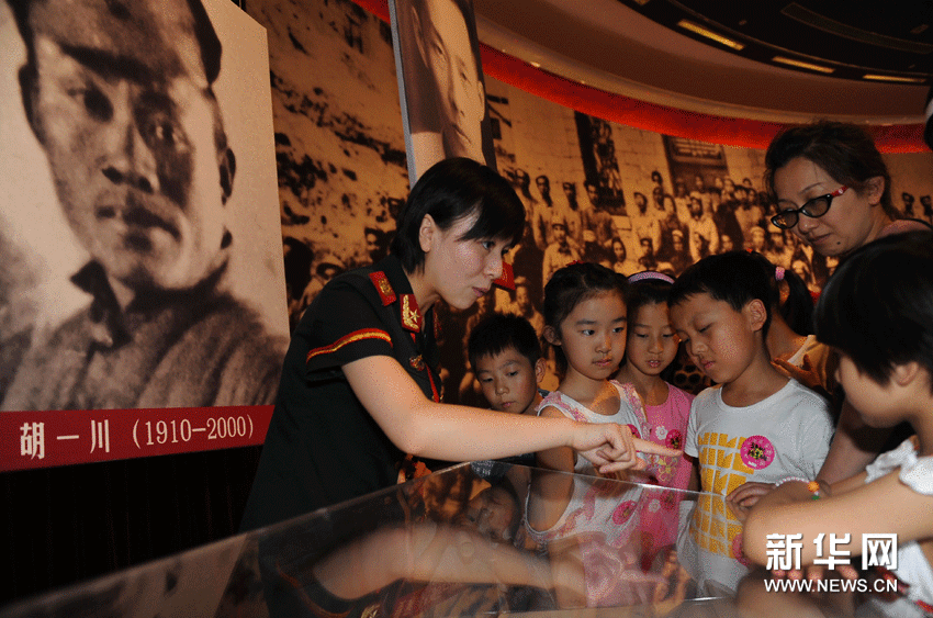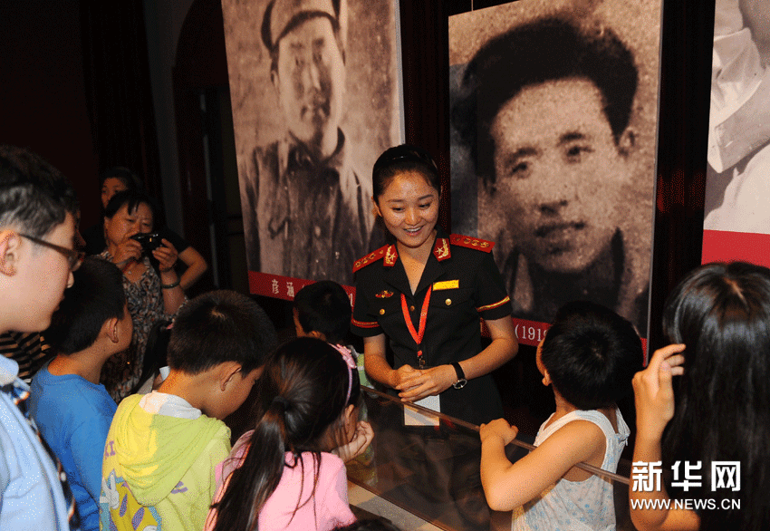 (2)5月27日,來自延安革命紀(jì)念館的講解員在為孩子們介紹展出作品。