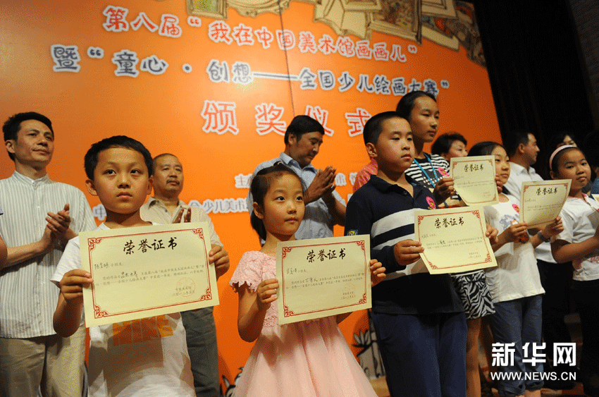 (4)5月27日,在第八屆“我在中國美術(shù)館畫畫兒”暨“童心·創(chuàng)想——全國少兒繪畫大賽”中獲獎的兒童在中國美術(shù)館登臺領(lǐng)獎。