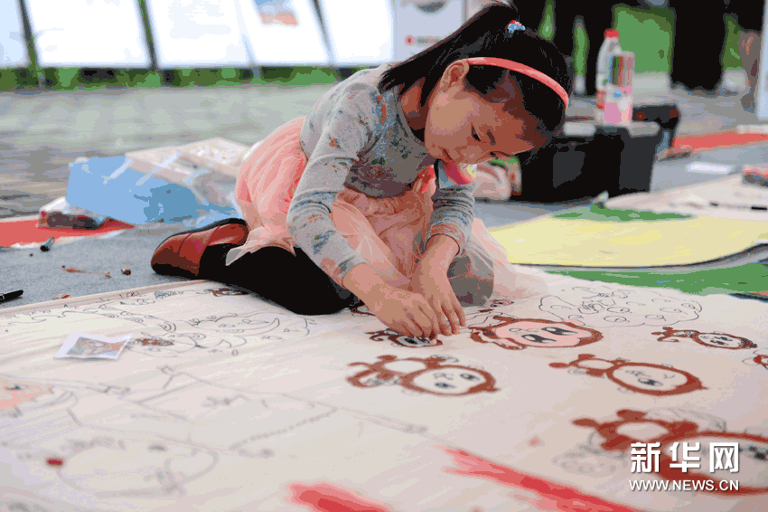 (3)6月1日,來自浙江省富陽市的華炘怡正在長卷上繪畫。